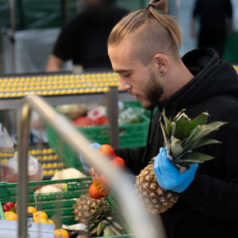 Imaginez : vous avez deux jours pour trouver preneur à une douzaine de palettes d’abricots. Ici, on ne jette rien, ou presque. Bienvenue dans un atelier bouillonnant, où chacun s’attelle à trier, stocker, ranger et charger des quantités industrielles de produits alimentaires avec pour seul objectif de leur donner une seconde vie en les redistribuant à des personnes dans le besoin.